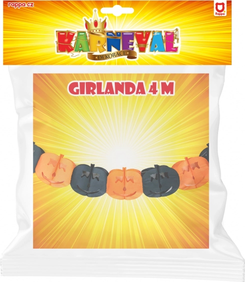 Dodaj charakteru swojej halloweenowej dekoracji dzięki czarno‑pomarańczowej girlandzie z motywem dyni. Dzięki papierowemu materiałowi jest lekka, łatwa do zawieszenia i natychmiast tworzy radosną atmosferę na uroczystościach i tematycznych imprezach.