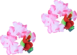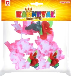 Ten różowy zestaw w stylu hawajskim jest idealny na imprezy tematyczne, karnawały i letnie przyjęcia. Tekstylowe kwiaty w odcieniach różu z akcentami czerwieni i zieleni wyglądają świeżo i fotogenicznie, więc wyróżnisz się na każdym zdjęciu.