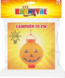 Rozświetl swoją halloweenową dekorację stylowo – ten papierowy lampion w kształcie kuli z motywem dyni wprowadzi czarującą atmosferę na każdą imprezę. Po włożeniu 2× baterii AAA (brak w zestawie) lampion rozbłyśnie i stworzy przyjemne pomarańczowe światło przypominające Jack-o'-lantern.