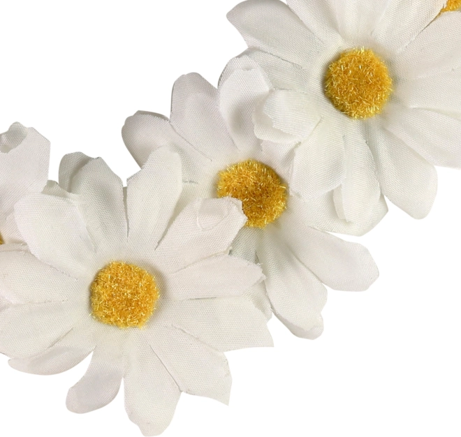 Ta urokliwa opaska z margaretkami natychmiast rozświetli każdy kostium i codzienny letni strój. Elastyczna gumka zapewnia wygodę noszenia przez cały dzień, a bogato zdobione kwiaty tworzą efektowny i radosny look.