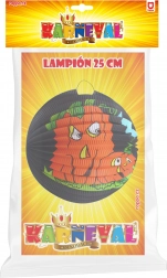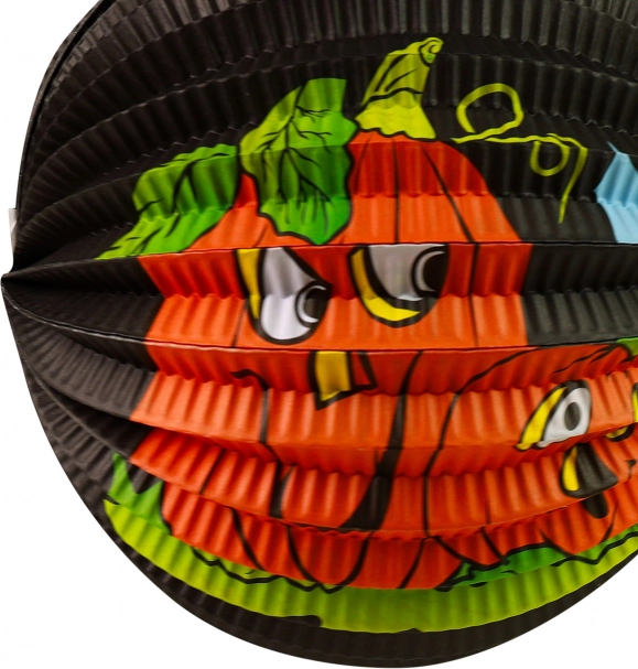 Stylowy czarny lampion z motywami dyni to świetny wybór do dekoracji wnętrz i zadaszonych przestrzeni podczas Halloween. Dzięki lekkiej papierowej konstrukcji łatwo go zawiesić i stworzyć tajemniczą, pomarańczowo rozświetloną atmosferę.