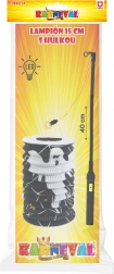 Ten stylowy halloweenowy lampion wprowadzi do Twoich obchodów prawdziwie tajemniczy nastrój. Papierowe wykonanie z motywem ducha świetnie prezentuje się w ciemności, a dzięki uchwytowi na świeczkę tealight wyczaruje przyjemne, ciepłe światło. W zestawie jest także świecąca pałeczka o długości 40 cm, która zapala się prostym przełączeniem włącznika na rękojeści.