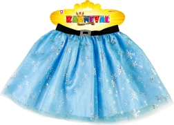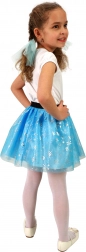 Ta urocza dziecięca spódniczka tutu zamieni każdą dziewczynkę w prawdziwą zimową księżniczkę. Lekki i puszysty tiul w niebieskim odcieniu uzupełniają błyszczące płatki śniegu, które pięknie odbijają światło. Dzięki elastycznemu pasowi spódniczka łatwo się zakłada i wygodnie nosi przez cały dzień.