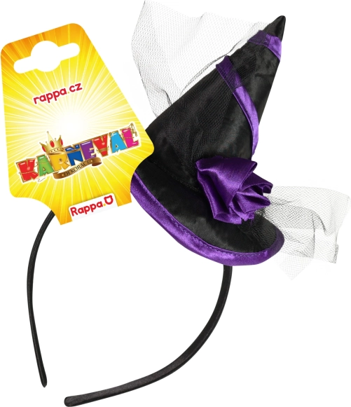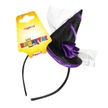 Stylowa opaska czarownicy to idealny dodatek na imprezę, karnawał i Halloween. Łączy czarno‑fioletową kolorystykę, satynowy mini kapelusik oraz tiulową kwiatową ozdobę, tworząc wyrazisty i fotogeniczny look.
