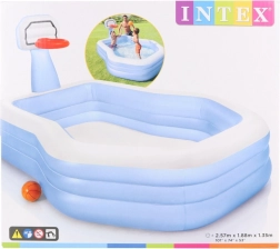 Centrum zabaw z zintegrowanym koszem do koszykówki i piłką oferuje świetne połączenie wodnych uciech i aktywności ruchowej. Przestronne wymiary 257 × 188 × 130 cm oraz pojemność 682 l (przy poziomie wody 32 cm) zapewniają dużo miejsca dla dzieci od 3 lat.