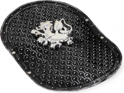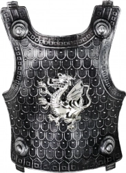Imponujący design z symbolami smoków na zbroi i tarczy zafascynuje każdego małego rycerza.