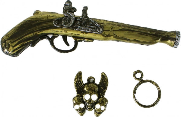 Precyzyjnie wykonany pistolet w antycznym stylu, idealny do pirackich potyczek.