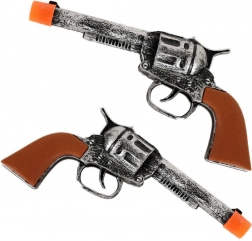 - Dwa realistyczne pistolety: Dzięki srebrnemu wykończeniu i brązowym rękojeściom wyglądają jak prawdziwa broń Dzikiego Zachodu.