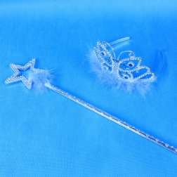 Ten ekskluzywny zestaw oferuje wszystko, czego potrzebuje mała księżniczka do swoich magicznych przygód. Zawiera piękną srebrną opaskę ozdobioną niebieskimi kamykami i elegancką różdżkę. Oba elementy są zdobione delikatnym niebieskim piórkiem, które dodaje piękna i magii. Idealne do zabawy w księżniczki, kostiumowe przyjęcia i inne kreatywne aktywności.