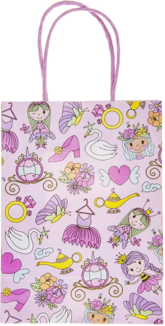 Ta torebka prezentowa z delikatnym motywem księżniczki ucieszy każdą małą elegantkę. Dzięki kompaktowym wymiarom 16 × 22 × 9 cm świetnie nadaje się na mniejsze i średnie prezenty, zabawki czy słodycze.