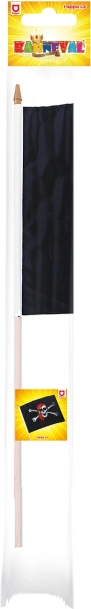Stylowa piracka flaga z ikonicznym motywem czaszki i skrzyżowanych kości jest idealna jako dekoracja na karnawał, dziecięce przyjęcia i tematyczne imprezy. Oferuje wymiary 47 × 30 cm i jest zamocowana na drewnianym kijku o długości 62 cm dla łatwego machania i eksponowania. Odpowiednia dla dzieci od 3 lat.