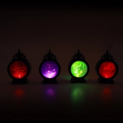 Ta stylowa halloweenowa lampa została zaprojektowana jako okrągły, latarenkowy akcent do dekoracji wnętrz i przyjęć. Po włączeniu automatycznie zmienia kolory, tworząc przyciągający wzrok efekt świetlny, który podkreśla wystrój i dodaje każdej przestrzeni tajemniczej atmosfery.