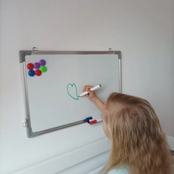 Tablica umożliwia łatwe pisanie i wymazywanie przy użyciu specjalnych mazaków i magnetycznej gumy, która jest częścią zestawu.