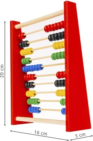 Wytrzymała drewniana rama ze stabilnymi bocznymi wspornikami utrzymuje liczydło pewnie na miejscu – idealne na biurko i szkolną ławkę.