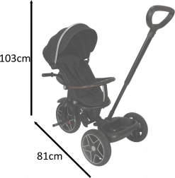 Gdy dziecko dorośnie i będzie gotowe na samodzielne jazdy, można usunąć elementy bezpieczeństwa i przekształcić je w klasyczną trójkołowkę. Cztery różne melodie z głośnika dodają zabawy podczas każdej jazdy. Produkt jest zapakowany w ekologiczne kartonowe opakowanie.