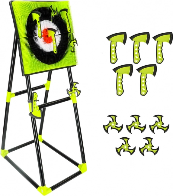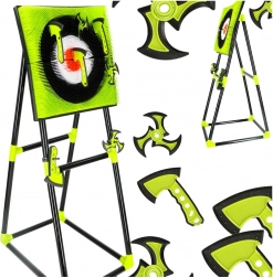 Zabawny i bezpieczny zestaw do rzucania w tarczę z miękkimi silikonowymi siekierami i shurikenami na stabilnym stojaku. Idealny dla dzieci od 8 lat – rozwija małą motorykę, koordynację oko–ręka i celność. Miękkie silikonowe końcówki oraz lekki plastik zapewniają bezpieczną zabawę w domu i w ogrodzie.