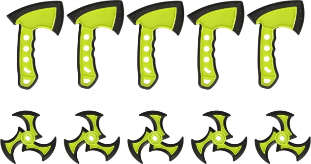 - tarcza, 5× shuriken, 5× siekiera, stojak