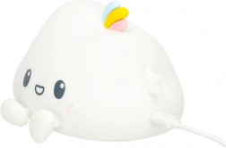 Urocza nocna lampka w kształcie chmurki z silikonową powierzchnią ucieszy każde dziecko. Oferuje 3 tryby świecenia (ciepła biel, RGB ze zmieniającymi się kolorami, światło jednokolorowe), sterowanie dotykowe, wbudowany akumulator 1200 mAh z czasem pracy 9–10 godzin oraz ładowanie USB. Miękkie, przyjemne światło tworzy uspokajającą atmosferę ułatwiającą zasypianie.