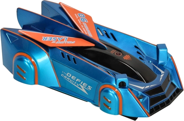 To sprytne auto RC dosłownie przeczy grawitacji – dzięki specjalnemu trybowi jazdy płynnie porusza się po powierzchniach pionowych i po suficie, a także po podłodze. Wystarczy skierować laser LED z pilota w odległości ok. 33 cm przed autem, a pojazd pojedzie dokładnie tam, gdzie wskażesz. Intuicyjne sterowanie zamienia każdy pokój w emocjonujący tor wyścigowy.