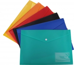 Praktyczna teczka na dokumenty z folią woskowaną, idealna do archiwizacji i sortowania dokumentów. Łatwy do czyszczenia materiał z zapięciem na zatrzask.