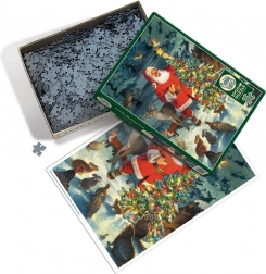 Scena ze ŚWIĘTYM MIKOŁAJEM dekorującym choinkę, otoczonym leśnymi zwierzętami, tworzy magiczną świąteczną atmosferę i po ułożeniu stanie się piękną dekoracją domu. Idealne jako prezent świąteczny, na chwile wytchnienia i wspólne układanie z rodziną.
