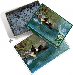 Każda układanka z 1000 elementów zawiera plakat referencyjny o wymiarach 31,6 x 22,9 cm, co ułatwia układanie i zapewnia dodatkowy podgląd finalnego obrazu. Wymiary ułożonych puzzli to ok. 67,6 x 48,9 cm, dzięki czemu stanowią idealny element dekoracyjny do domu lub biura. To doskonały prezent dla miłośników wędkarstwa i puzzli, łączący obie pasje w jedno wyjątkowe przeżycie.