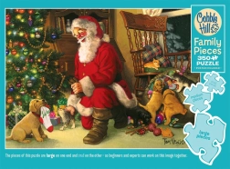Rodzinne puzzle COBBLE HILL wprowadzają sprytną koncepcję wygodnego układania międzypokoleniowego. W jednej części motywu znajdziesz duże elementy dla młodszych dzieci, pośrodku średnie elementy dla swobodnego układania, a po drugiej stronie małe elementy dla dorosłych i bardziej doświadczonych układaczy. Świąteczny motyw skarpety Świętego Mikołaja wniesie do domu przyjemną, świąteczną atmosferę.