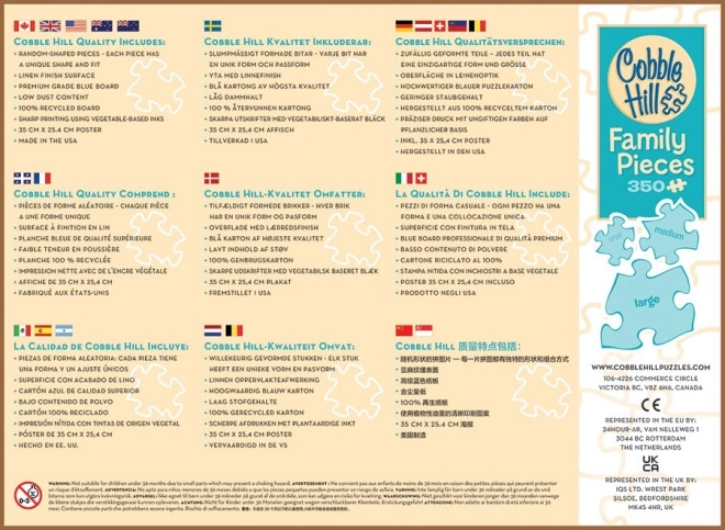 Ciesz się wspólnym układaniem z rodzinnymi puzzlami COBBLE HILL z motywem Świętego Mikołaja i zwierzęcych przyjaciół. Opakowanie zawiera elementy w trzech rozmiarach – małe, średnie i duże – dzięki czemu są idealne dla dzieci, rodziców i dziadków. Niestandardowa wykrawka z oryginalnymi kształtami elementów zapewnia ciekawą rozrywkę, a gotowy obrazek ma wymiary ok. 67,6 × 48,9 cm.