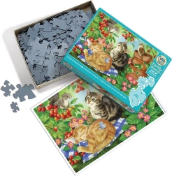 Wykrojnik COBBLE HILL nie opiera się na klasycznej siatce – elementy mają nietypowe kształty, a rogi z krawędziami nie zawsze są w jednej linii. Dzięki temu układanka jest przyjemnie bardziej wymagająca niż zwykłe puzzle i zapewnia dłuższą rozgrywkę. W opakowaniu znajdziesz także podkład o wymiarach 31,6 × 22,9 cm, który ułatwia orientację podczas układania.