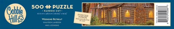 Zrelaksuj się przy wysokiej jakości puzzlach z motywem weekendowego schronienia od marki COBBLE HILL. Elementom wyjątkowy charakter nadaje specjalna wykrawarka o nieregularnych kształtach, która zapewnia zabawną trudność zarówno dla zaawansowanych, jak i entuzjastycznych początkujących. W opakowaniu znajdziesz także pełnowymiarową podkładkę-wzór ułatwiającą układanie oraz gotowy obraz o wymiarach ok. 67,6 × 48,9 cm.