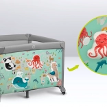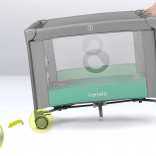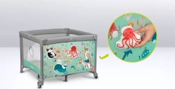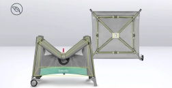 Częścią kojca jest wygodny piankowy materac T25 z różnorodną powierzchnią 3D i system LockGuard, który zapobiega niechcianemu składaniu. Dla łatwej mobilności kojec ma 2 kółka z hamulcem i praktyczną torbę transportową do wygodnego przenoszenia.