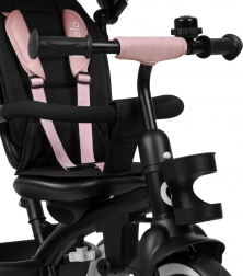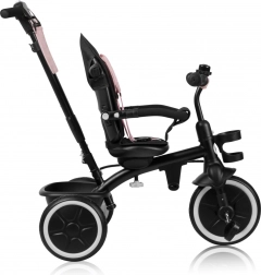 Dziecięce pojazd Lionelo Berry Różowy łączy funkcje wózka i rowerka trójkołowego. Dzięki obrotowemu siedzisku i regulowanemu uchwytowi dostosowuje się do potrzeb zarówno dziecka, jak i rodzica. Bezpieczeństwo zapewniają 3-punktowe pasy, ochronna rama i bariera wokół siedziska. Łatwe składanie na klik bez potrzeby narzędzi ułatwia manipulację.