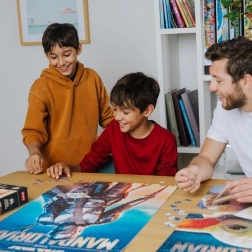 Elementy puzzli trzymają się razem – dzięki wyjątkowej grubości kartonu złożone fragmenty lub całe ułożone puzzle można wygodnie przenosić bez rozsypywania.