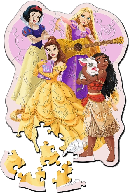Drewniane puzzle DISNEY Księżniczki zachwycą każdego, kto szuka pięknego i wartościowego układania. Nieregularne kształty elementów oraz ukryte figurki z motywami księżniczek zapewniają wciągające wyzwanie, które bawi dzieci i dorosłych. Każdy element jest solidny, trwały kolorystycznie, a na odwrocie uzupełniony eleganckim wzorem dla jeszcze większych wrażeń estetycznych.