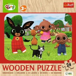 Bezpieczeństwo jest najważniejsze – zaokrąglone krawędzie chronią podczas zabawy, a ekologiczne opakowanie całkowicie bez plastiku ucieszy także rodziców. Dekoracyjny wzór na rewersie dodaje puzzlom uroku i czyni z nich świetny prezent dla małych fanów BING.