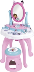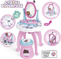 Toaletka 2 w 1 Koci domek Gabi oferuje dziecku godziny zabawy podczas gry w upiększanie. Zawiera lustro, stołek i 12 stylowych dodatków inspirowanych bajką Dom lalek Gabby.