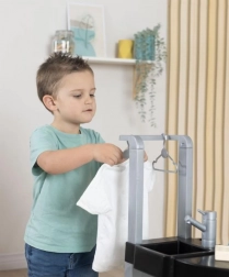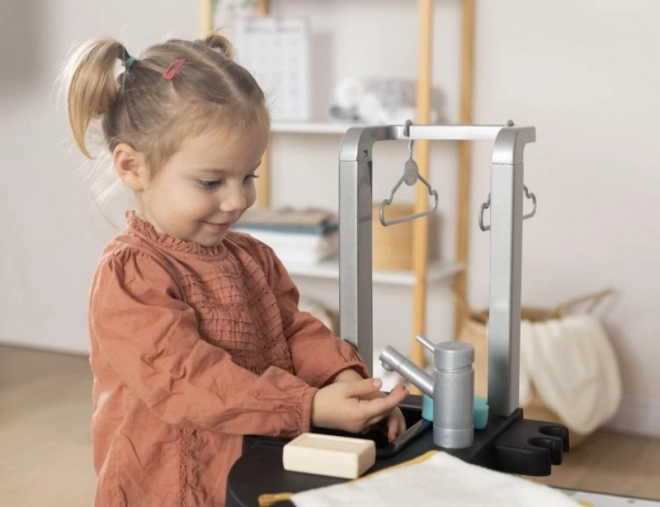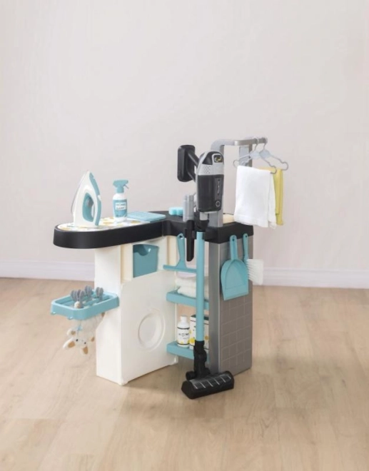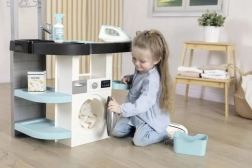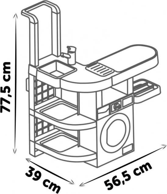 Dzieci mogą korzystać z czterech różnych części: pralki, umywalki, strefy suszenia i deski do prasowania. Każda część została zaprojektowana tak, aby tworzyć autentyczne scenariusze zabawy.