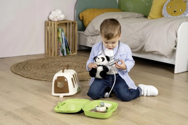 Urocza pluszowa panda zachęca dzieci do pełnej czułości opieki, rozwija umiejętności społeczne i nadaje zabawie realistyczny wymiar. Świetny towarzysz dla małych weterynarzy.