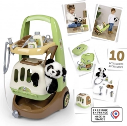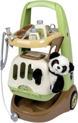 Wózek weterynaryjny Smoby z pandą oferuje dzieciom od 3 lat autentyczną zabawę w weterynarza. Dzięki sprytnemu rozwiązaniu 2w1 praktyczny box służy jako transporter dla zwierzątek oraz jako samodzielna, mobilna walizka lekarska. Wózek ma kółka o lekkim biegu, więc łatwo się prowadzi nawet młodszym dzieciom, a jednocześnie oferuje dużo miejsca na przechowywanie całego wyposażenia.