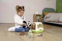 W zestawie znajduje się urocza pluszowa panda oraz pełny komplet narzędzi: stetoskop, strzykawka, nożyczki, miska na karmę, bransoletka i dwie buteleczki (na szampon lub lek). Wszystko mieści się w odpinanej walizeczce, którą można przypiąć do wózka lub używać oddzielnie — idealne do przenoszenia i szybkiej opieki nad zwierzęcymi pacjentami w domu i w podróży.