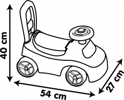 - mechaniczny klakson; oparcie z uchwytem; schowek pod siedziskiem; zabezpieczenia przed wywróceniem