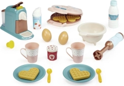 Stwórz idealne dziecięce śniadanie z multifunkcyjnym zestawem, który łączy trzy ulubione sprzęty kuchenne w jednym: ekspres do kawy, gofrownicę i blender ręczny. Dzięki bogatemu wyposażeniu dzieci łatwo naśladują przygotowywanie napojów i smakołyków, rozwijają motorykę małą i uczą się współpracy.
