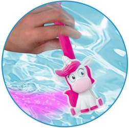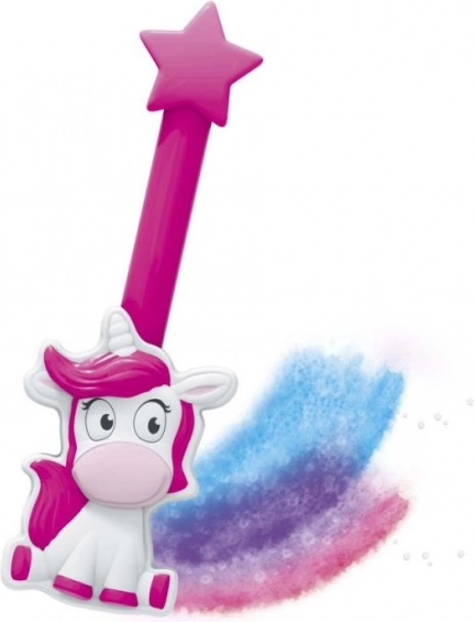 Lekka plastikowa różdżka z motywem jednorożca i gwiazdką na końcu świetnie pasuje do dziecięcego pokoju i łazienki, zachęcając do kolejnych zabaw.