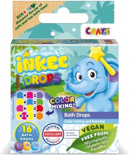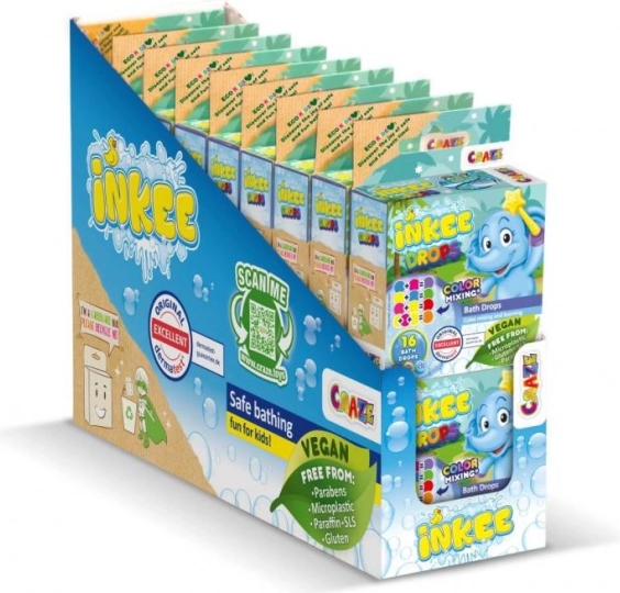 Zafunduj dzieciom i sobie figlarną, pachnącą kąpiel z płatkami INKEE. 100 g kolorowych kawałków w czterech warstwach (niebieska, różowa, fioletowa, żółta) powoli rozpuszcza się w wodzie, tworząc magiczną eksplozję kolorów z niezwykłym zapachem waty cukrowej i pielęgnacją masła shea.