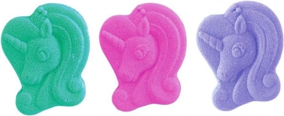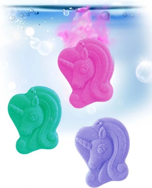 Każda tabletka po wrzuceniu do wody zaczyna musująco się rozpuszczać i wypełnia kąpiel aromatem karmelowego ciasta. Trzy różne kolory – różowy, fioletowy i morski – nadają każdej kąpieli inną atmosferę. Odpowiednie dla dzieci, które kochają jednorożce i wesołe barwy.