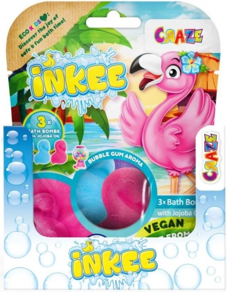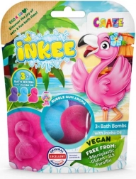 Umil kąpiel dzieciom i sobie dzięki zabawnym musującym kulom INKEE w kształcie flaminga. W opakowaniu znajdziesz trzy kolorowe kule (różową, fioletową, niebieską) o zapachu gumy balonowej i z pielęgnującym olejem jojoba. Skład jest wegański, bez mikroplastiku, glutenu, SLS i parafiny, a do tego zaprojektowany tak, by nie barwić niekontrolowanie wanny. Idealne do zabawnej, pachnącej i delikatnej kąpieli.