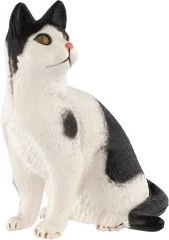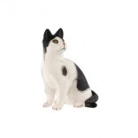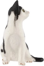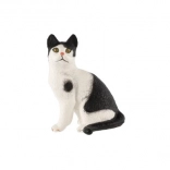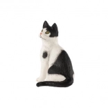 Delikatna tekstura futra, dokładne proporcje oraz czarno-białe umaszczenie wyglądają autentycznie – figurka przypomina żywego kota w pozycji siedzącej.