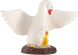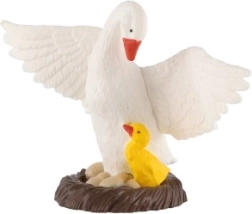 Figurka gęsi z pisklęciem doda Twojemu domowi lub ogrodowi odrobinę natury. To plastikowa figurka, która wygląda bardzo realistycznie dzięki dbałości o detale i precyzyjnemu wykonaniu. Gęś i jej pisklę są umieszczone na brązowej podstawce, co zapewnia stabilność dekoracji. Ta figurka idealnie sprawdzi się jako element wystroju wnętrza lub do ożywienia przestrzeni zewnętrznej.