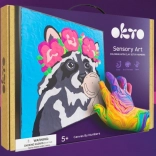 Ten kreatywny zestaw z motywem szopa to świetny wybór na pierwsze kroki w świecie sztuki. Dzięki masie samoutwardzalnej i malowaniu palcami dzieci z łatwością stworzą oryginalny trójwymiarowy obraz na płótnie. Nie ma potrzeby wypiekania – masa twardnieje sama na powietrzu.