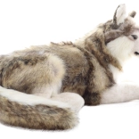 Pluszowy wilk ma realistyczny wygląd z detalami w kolorach i wzorach, które naśladują prawdziwe futro wilka.
